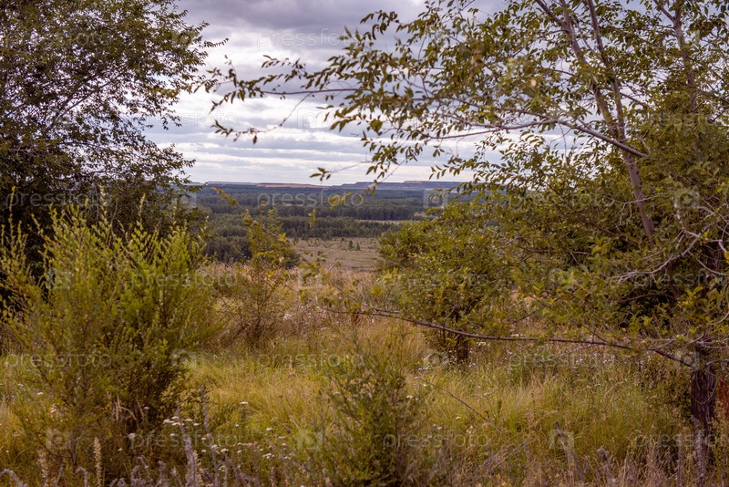 Летний пейзаж, природа, кустарники, деревья, трава