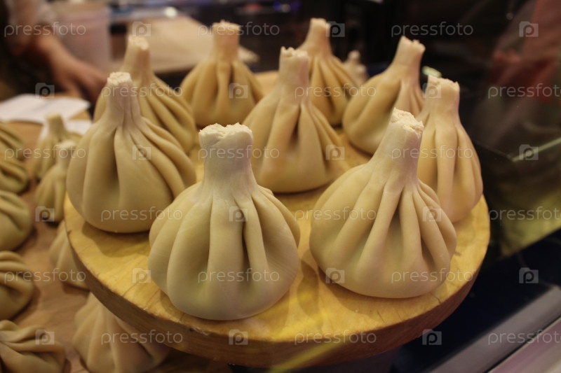 Хинкали. National dish of Georgia raw khinkali large side view