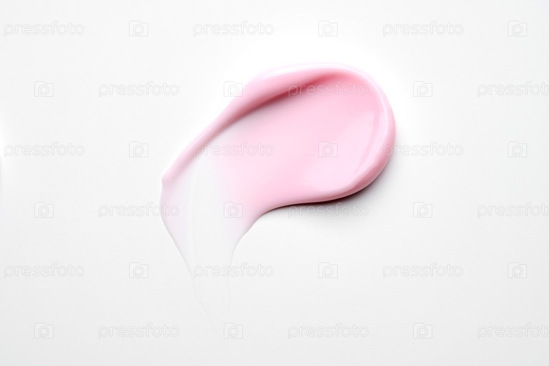 Розовый косметический образец крема крупный план на белом фоне. концепция ухода за кожей