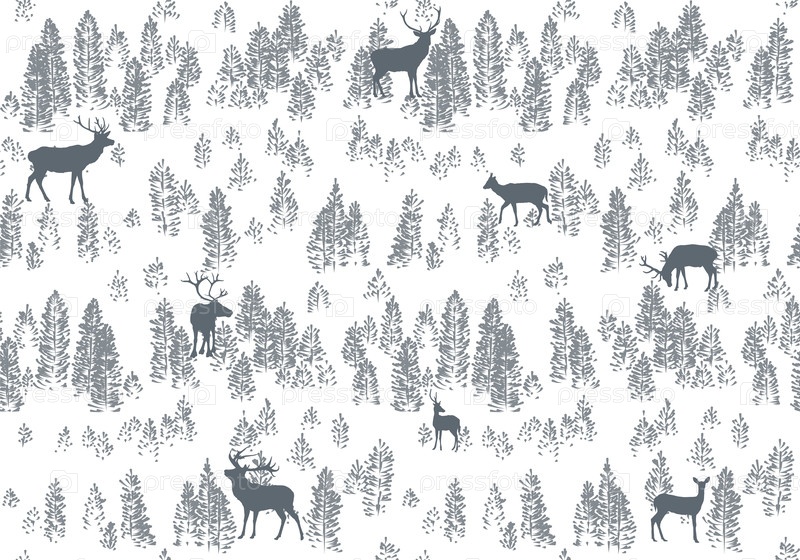 Бесшовный фон с туманным лесом и оленями