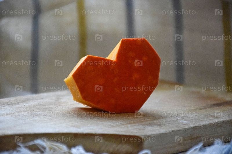 Кусок тыквы в форме сердца на близкой деревянной доске