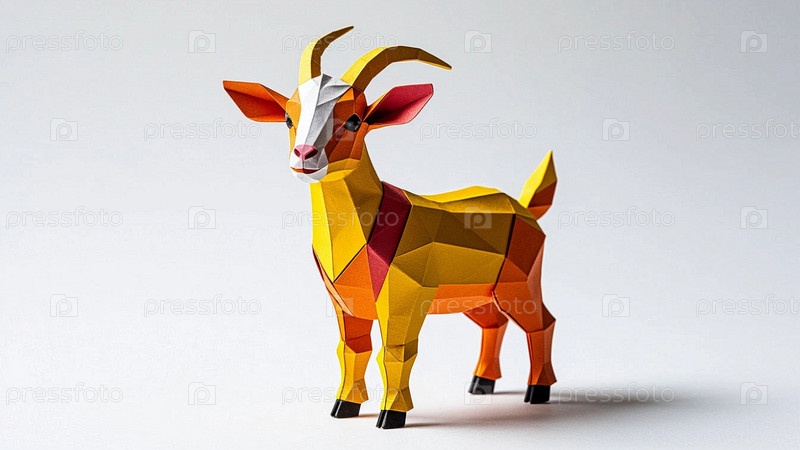 Животное козерог обрабатывается в стиле оригами в бумажной работе