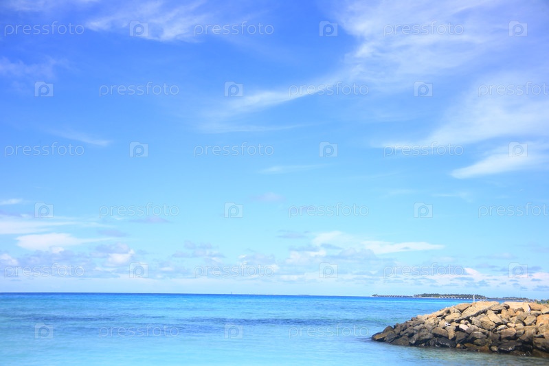 Пляж и голубое небо на тропическом курорте в океане