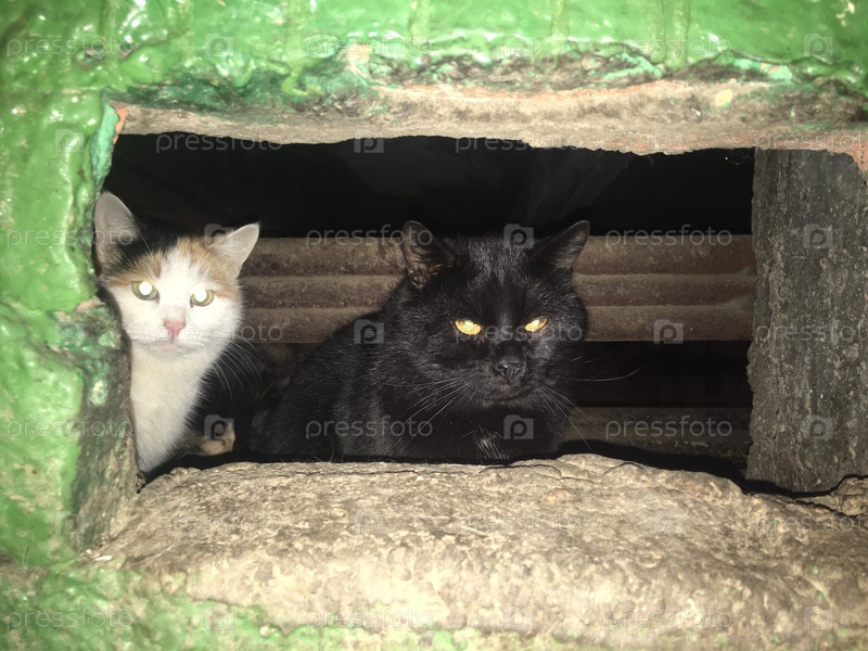 Уличный кот и кошка живут в подвале пятиэтажного здания