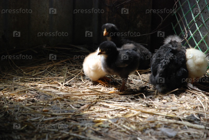 Маленькие цыплятки в курятнике