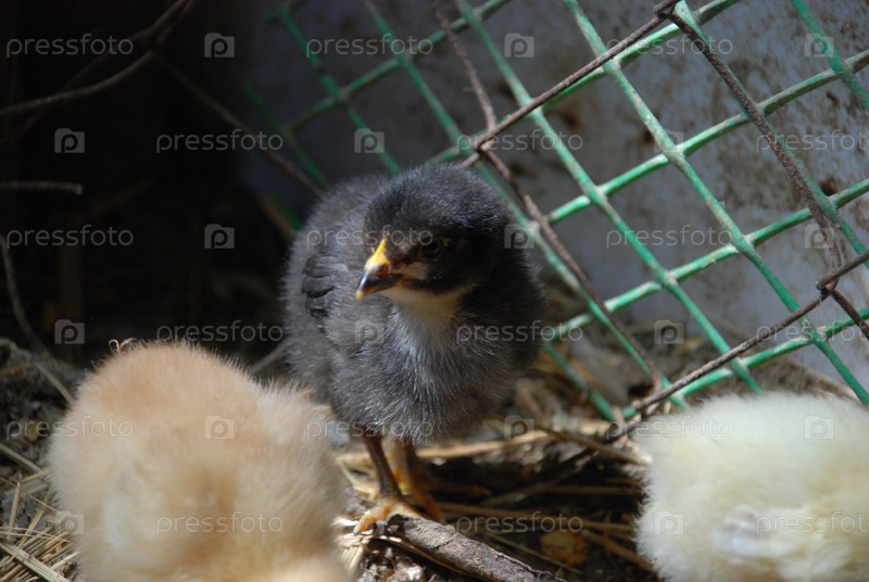 Маленькие цыплятки в курятнике