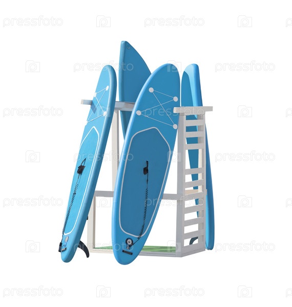 Система полок для хранения досок для сапсерфинга, изолированная на белом фоне