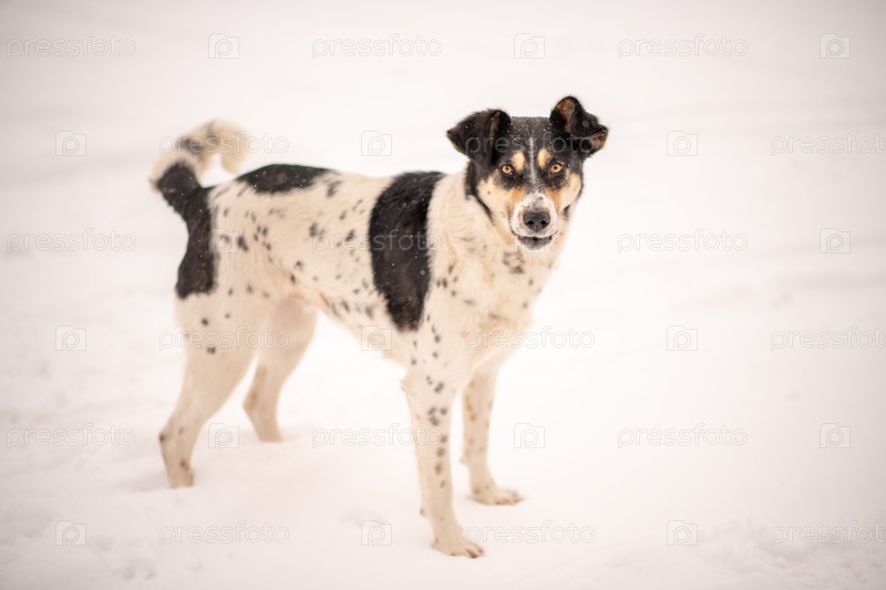 Злая уличная собака зимой