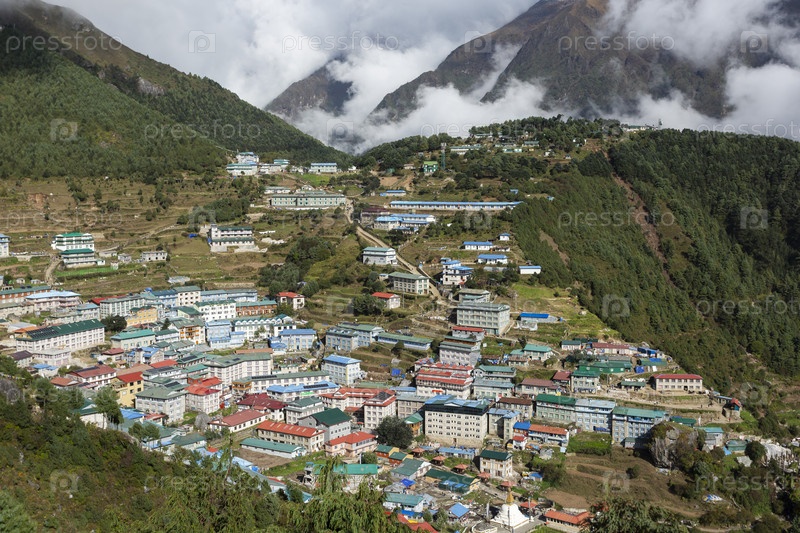 Вид с воздуха на Базар Намче, деревню в регионе Хумбу Национального парка Сагармата, Непал
