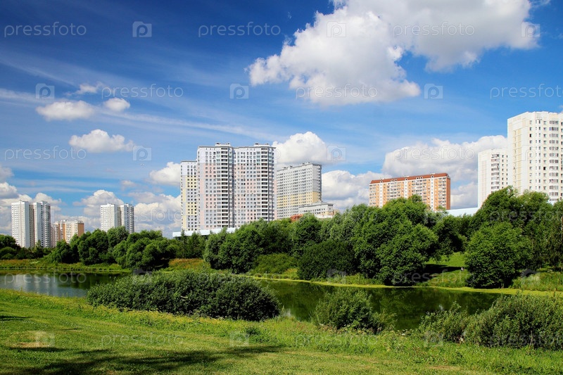 Городской пейзаж с озером