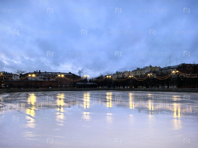 Вечерний вид погружения в лед с отражением и светом.Сфотографировано на смартфоне