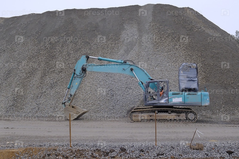 Поврежденный экскаватор среди груды гравия.Россия Воронежская область Декабрь 05 2025