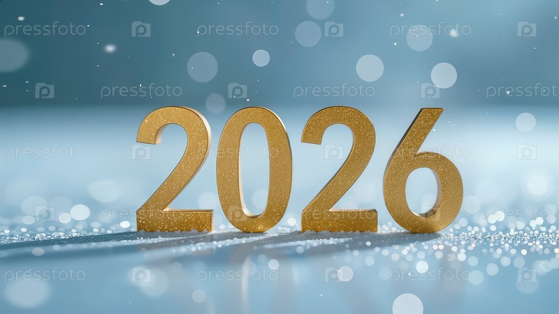 Золотые числа 2026 на голубом праздничном фоне