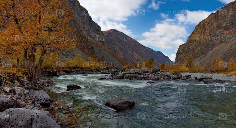 Юг Западной Сибири, Алтайские горы.Золотая осень в долине реки Чулышман возле перевала Кату-Ярык