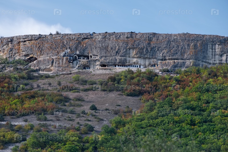 Мангуп-Кале, Россия. 4 октября 2024. вид пещерного монастыря Святого Благовещения на плато с древней крепостью