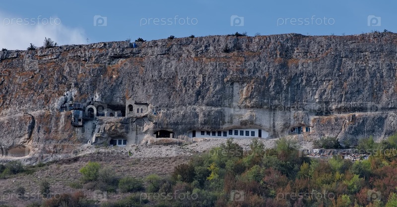 Мангуп-Кале, Россия. 4 октября 2024. вид пещерного монастыря Святого Благовещения на плато с древней крепостью