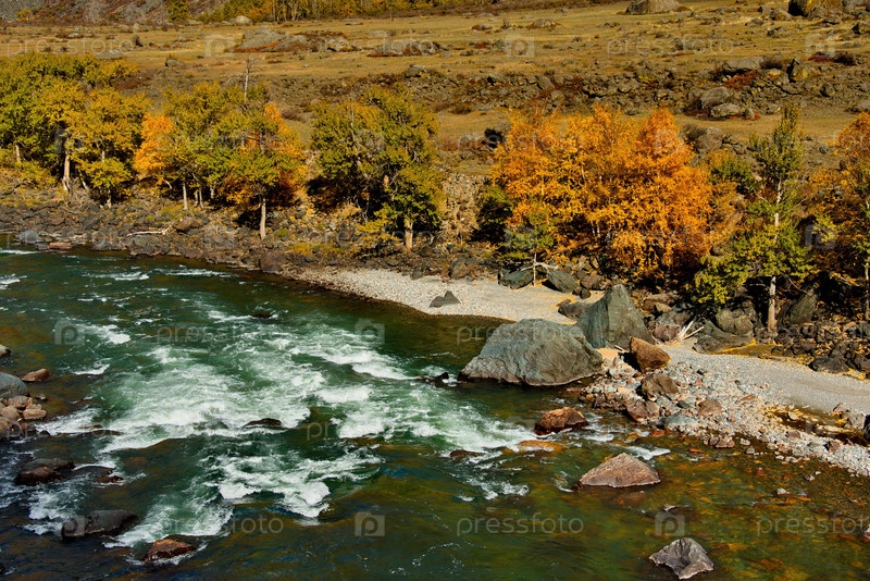 Юг Западной Сибири, Алтайские горы.Золотая осень в долине реки Чулышман возле перевала Кату-Ярык