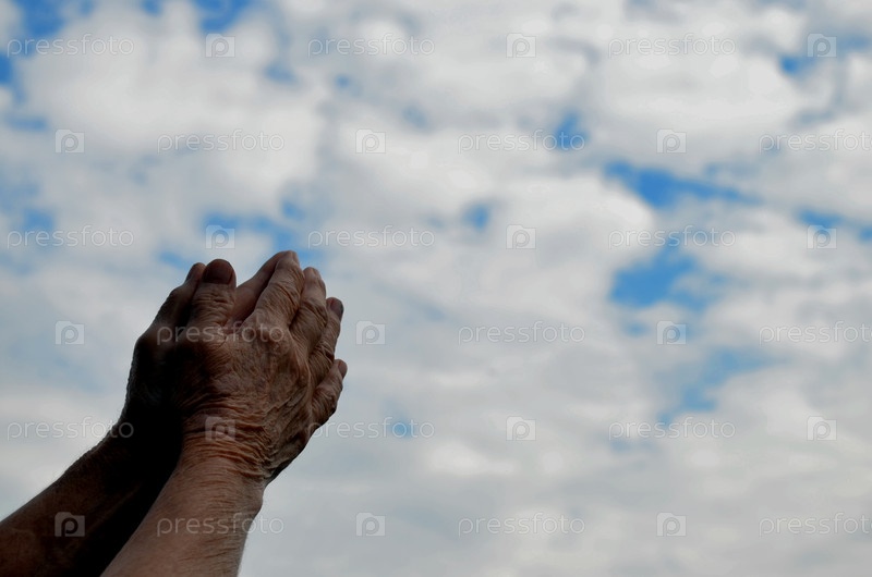 Руки пожилого человека, простирающиеся к небу