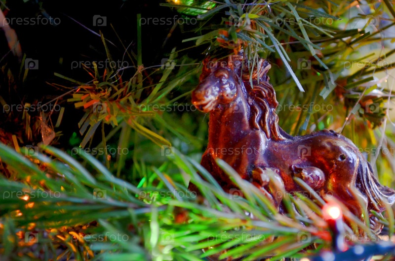 Глинистый конь в новогоднем украшении