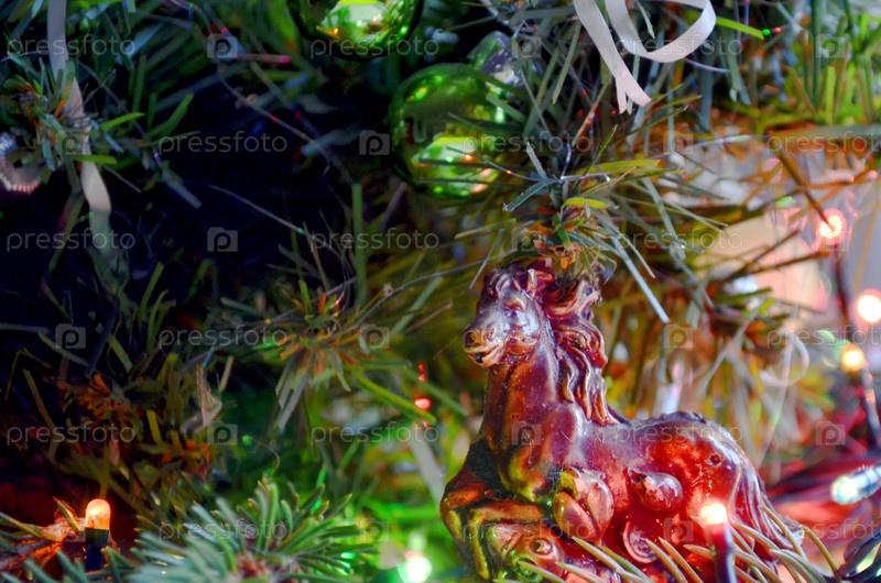 Глинистый конь в новогоднем украшении