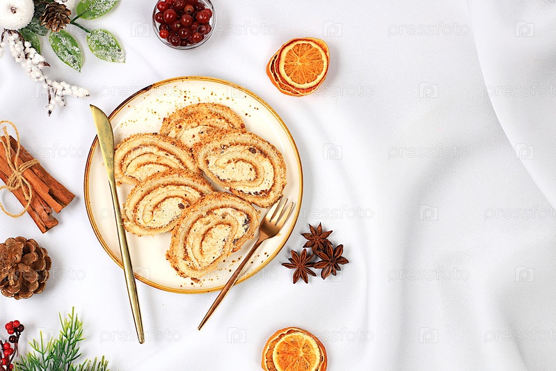 Самодельный зимний десерт: столен, рулоны или штрудель со сладким сливочным наполнением, орехами, корицей, клюквенкой и маком, а также ликером из яиц