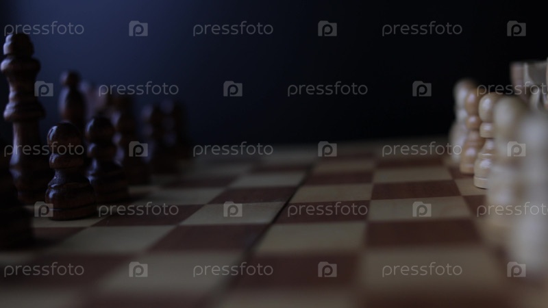Шахматная доска с динамическими фигурами, черное против белого стратегическое противостояние