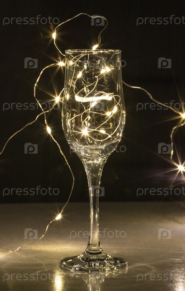 Мигающие волшебные огни в стакане шампанского