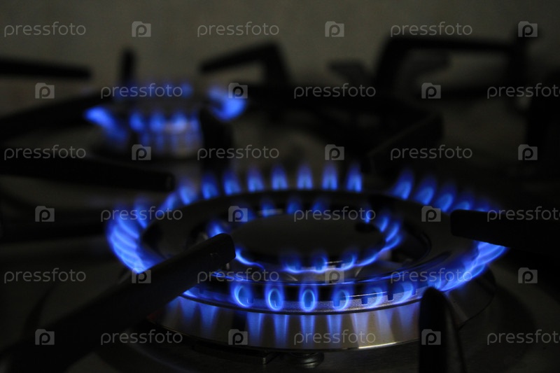 Газовая плита горит в темноте