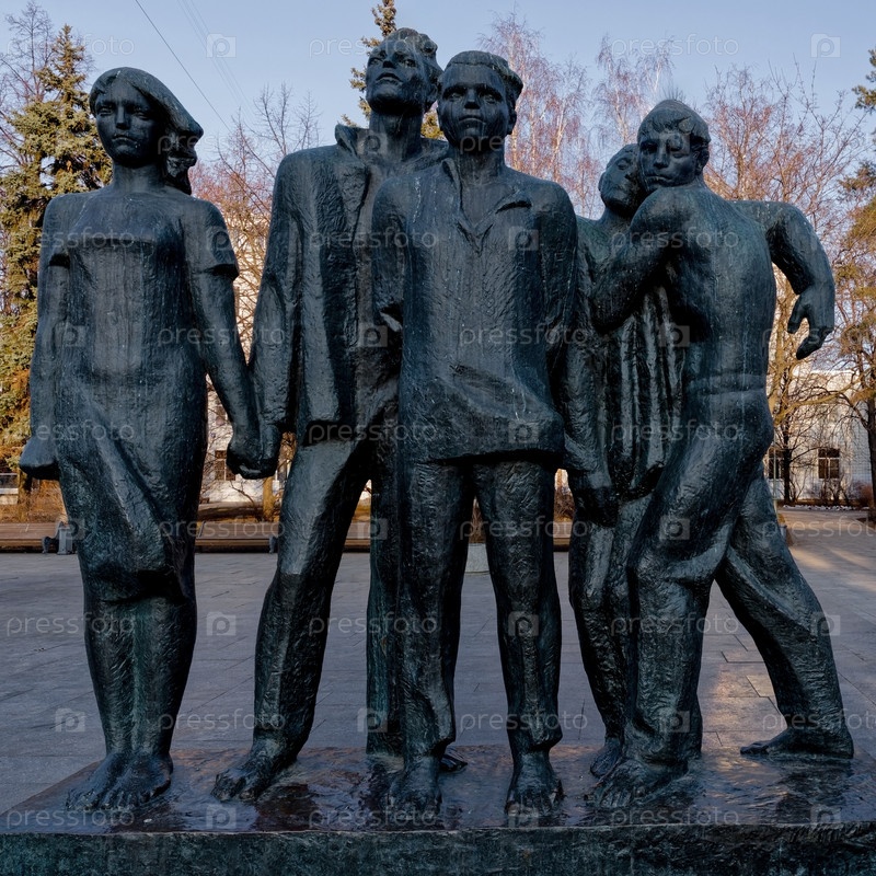 Бронзовые скульптуры молодых гвардейцев из романа Фадеева Молодая гвардия Москва, Миусская площадь