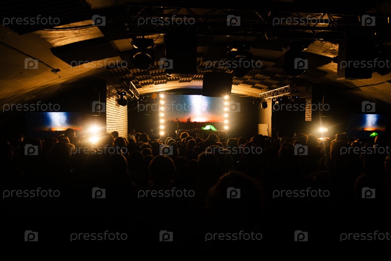 Толпа зрителей перед большим экраном на сцене концерта