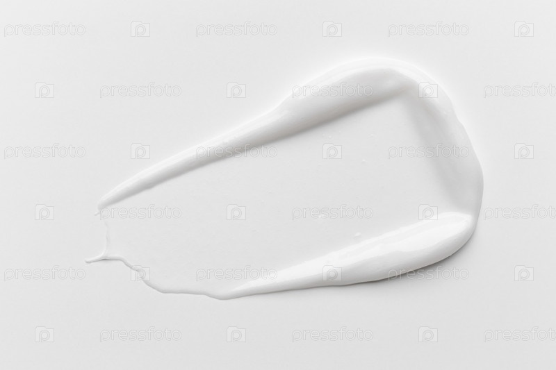 Жидкая кремовая косметическая мазь капает текстурой на белом фоне. косметические мазки кремной текстуры