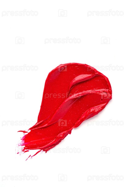 Красная помада swatch смазала текстуру, выделенную на белом фоне. Красота и косметическая концепция