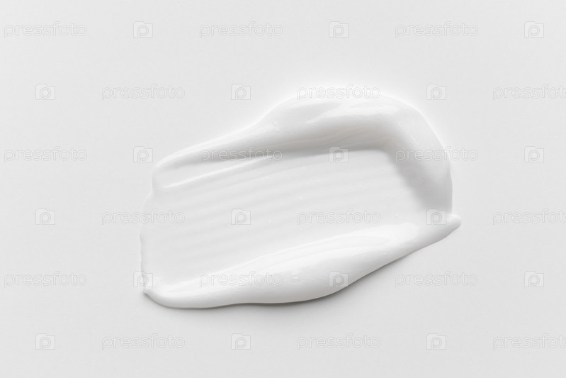 Жидкая кремовая косметическая мазь капает текстурой на белом фоне. косметические мазки кремной текстуры