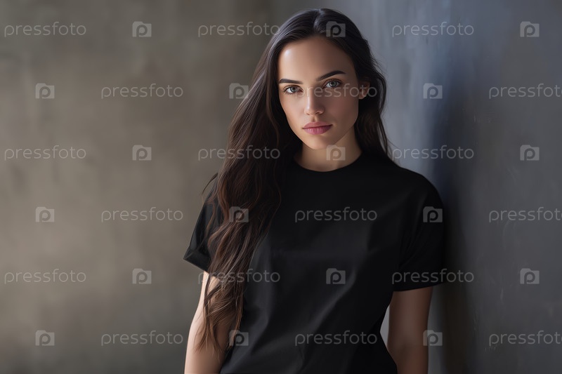 Портрет красивой молодой женщины в черной футболке