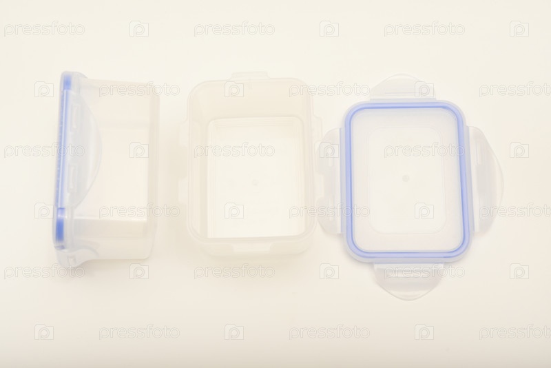 Два пластиковых контейнера с голубой крышкой на белом фоне
