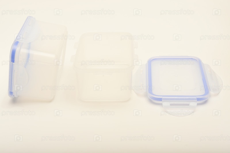 Два пластиковых контейнера с голубой крышкой на белом фоне
