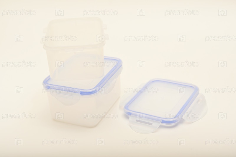 Два пластиковых контейнера с голубой крышкой на белом фоне