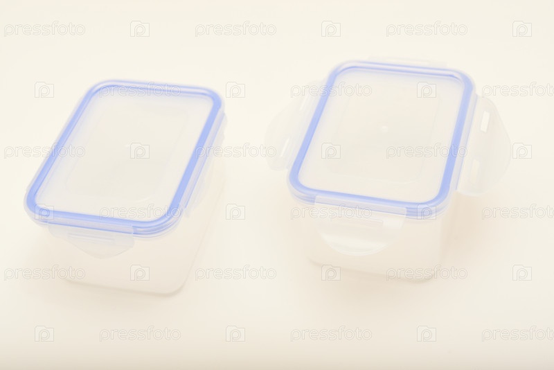 Два пластиковых контейнера с голубой крышкой на белом фоне