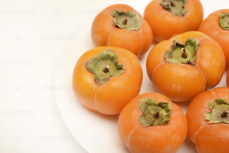 Оранжевый плод персимона, созревший персимон на тарелке