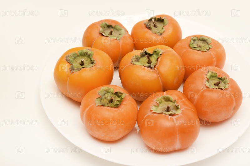 Оранжевый плод персимона, созревший персимон на тарелке
