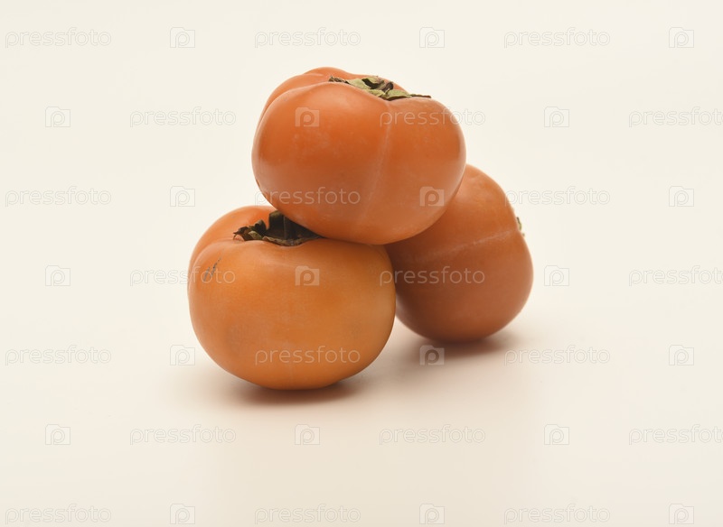 Оранжевый плод персимона, созревший персимон на светлом фоне