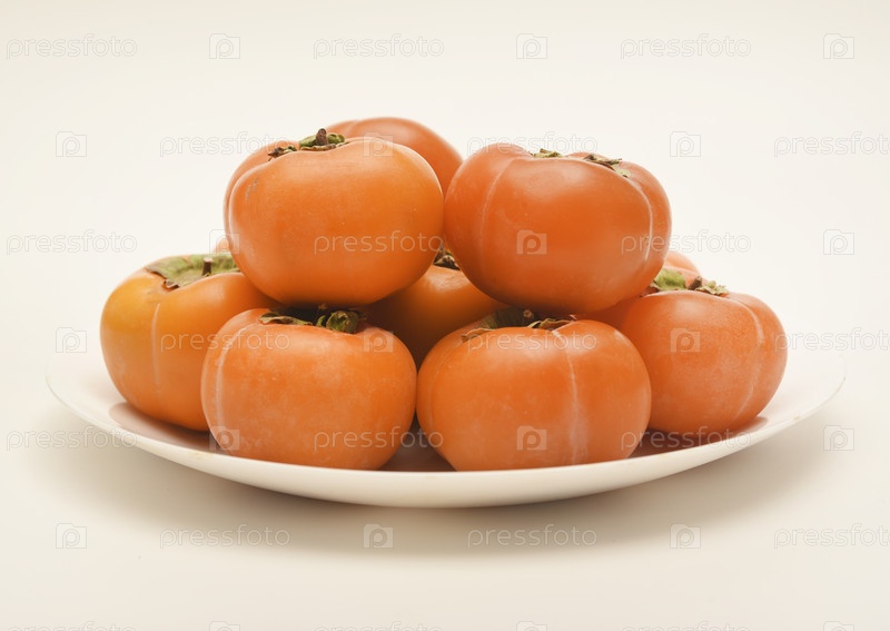 Оранжевый плод персимона, созревший персимон на светлом фоне