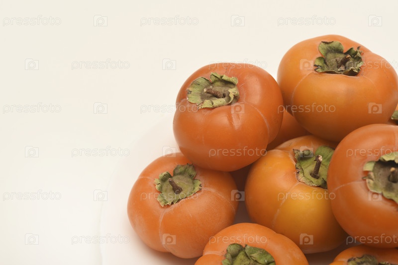 Оранжевый плод персимона, созревший персимон на светлом фоне