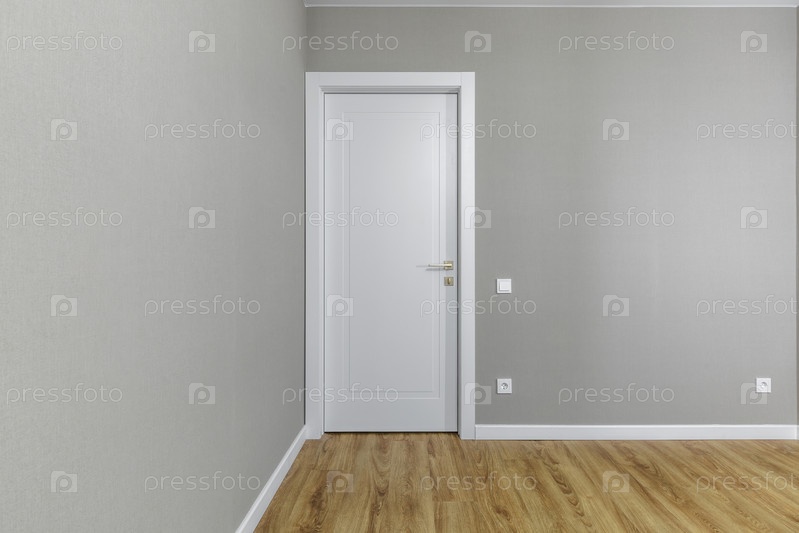 Современный коридор в квартире с белыми дверями и деревянным полом