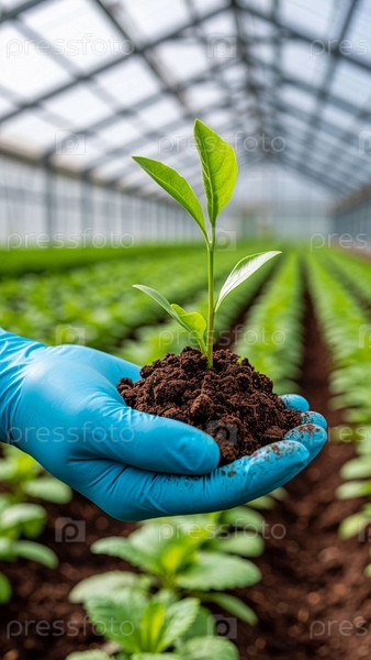 Цветочные побеги в руке в теплице