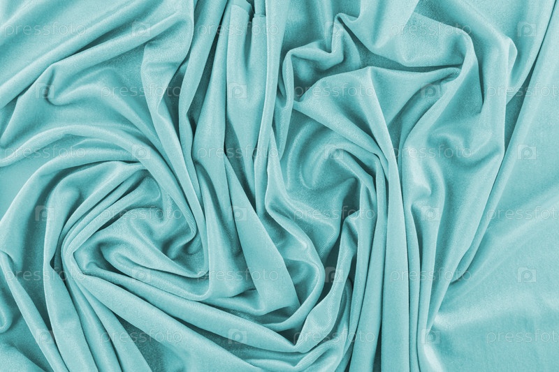 Мягкие складки из бирюзовой бархатной ткани. Вид сверху. Праздничный фон. Дизайнерская компоновка. Реклама вашего продукта. Текст для дизайна