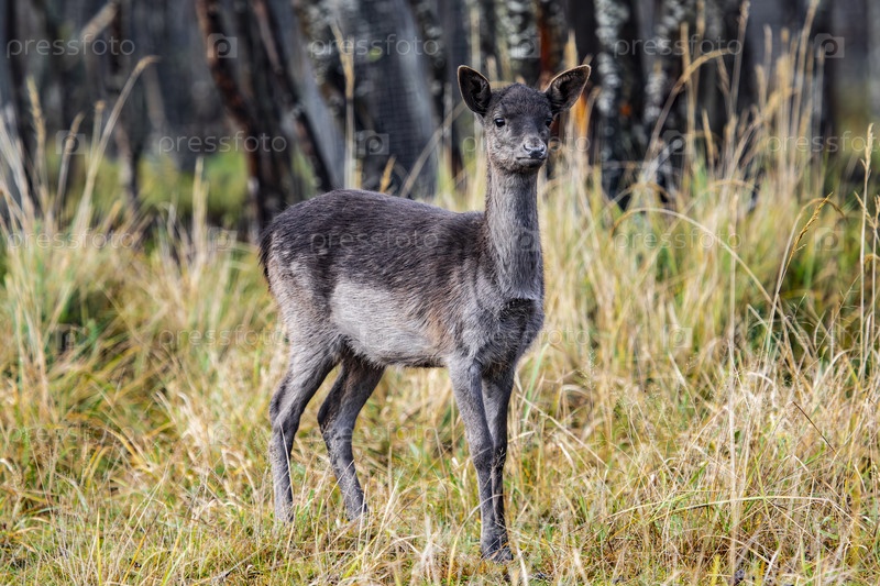 Молодой олень (Capreólus) в осеннем лесу