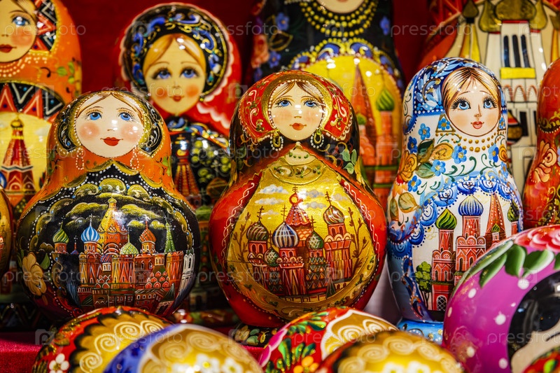 Яркие русские куклы для гнездования с картиной собора Василия Блаженного