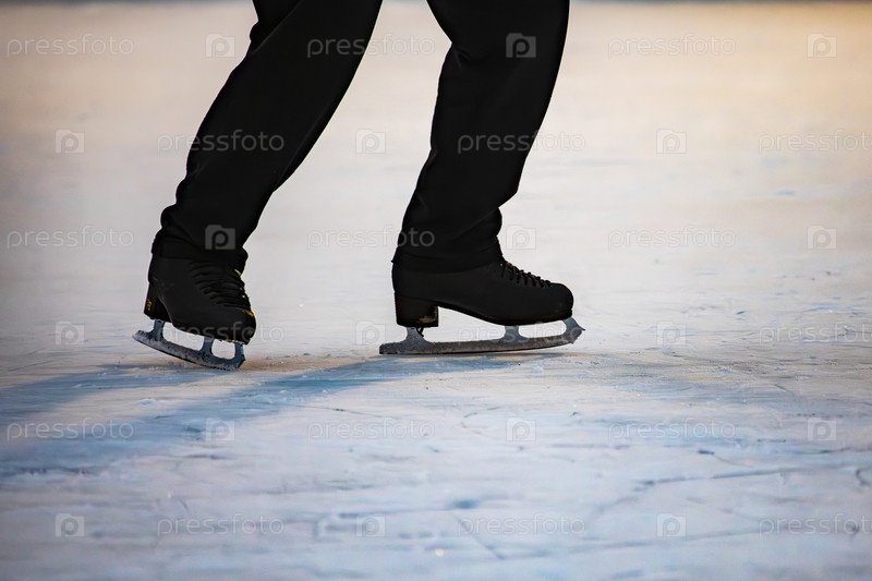 Ноги катающегося на коньках в ледовой арене