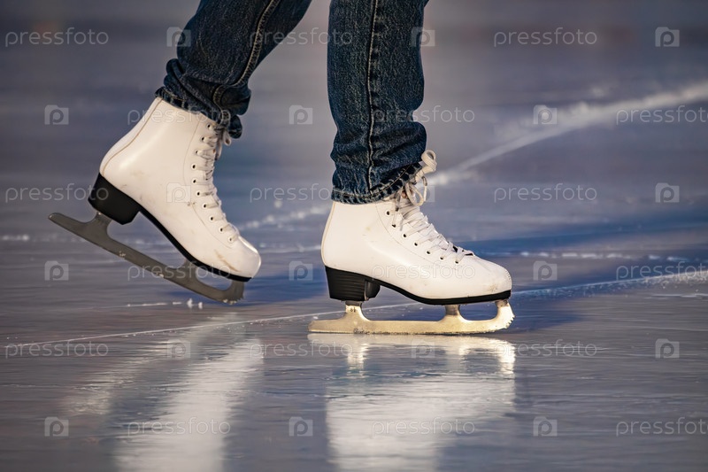 Ноги в белом фигурном катании на конькобежном катке